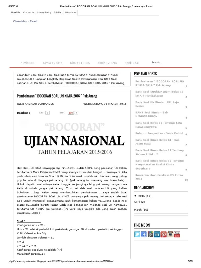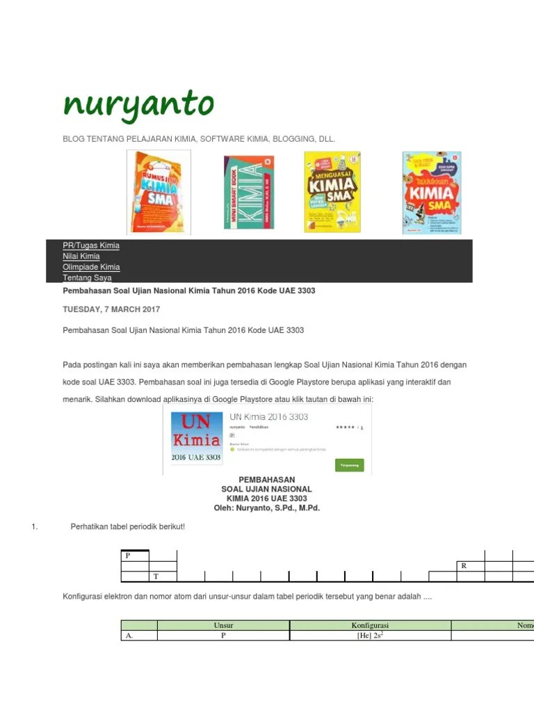 Soal Ujian Nasional Kimia Tahun 2016 Beserta Pembahasannya : Soal Soal Un Kimia Dan Pembahasannya Dengan - Di antara mereka, ada teman karibnya bernama budi, candra, sandra, susan, dan dewi.